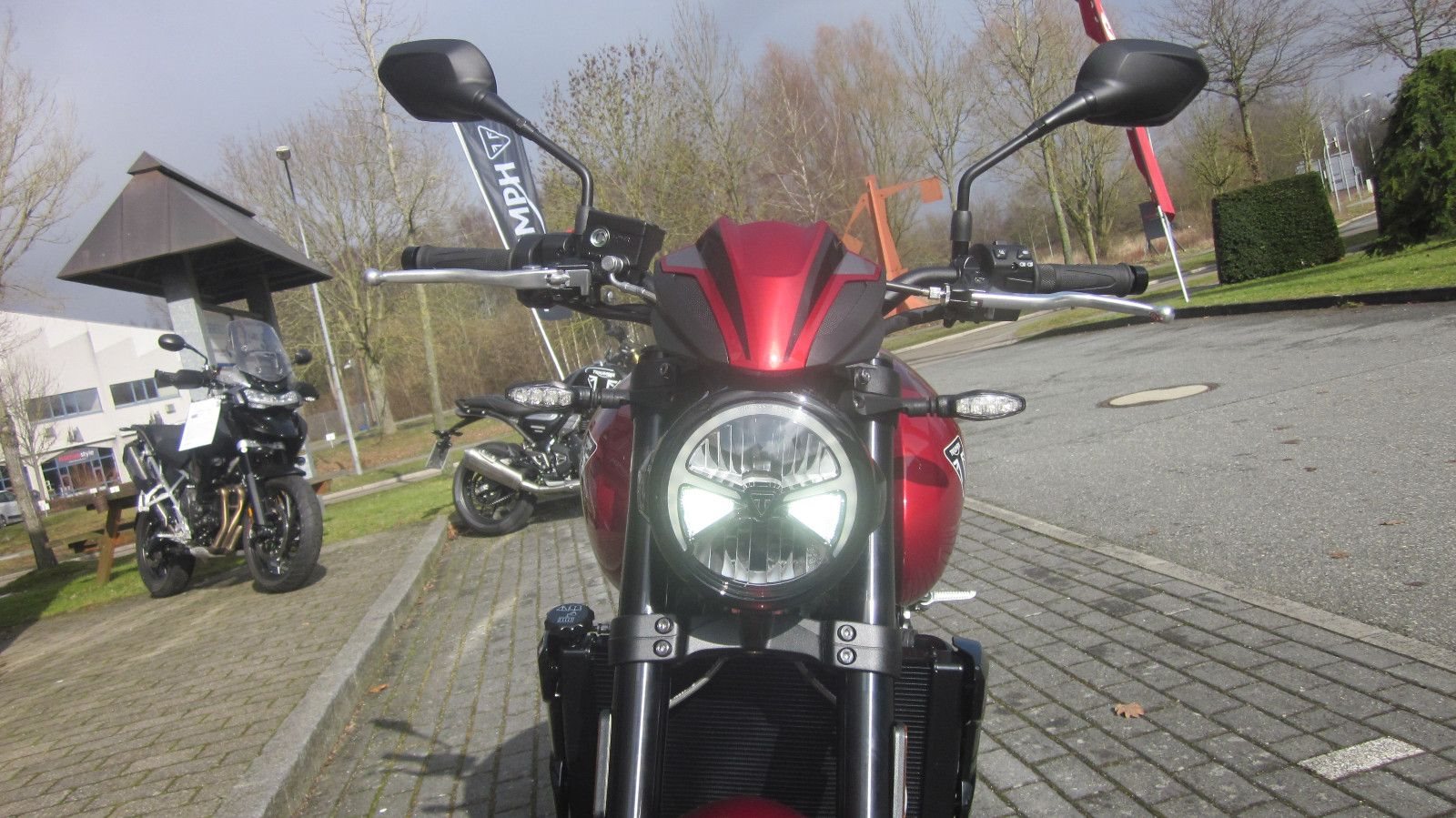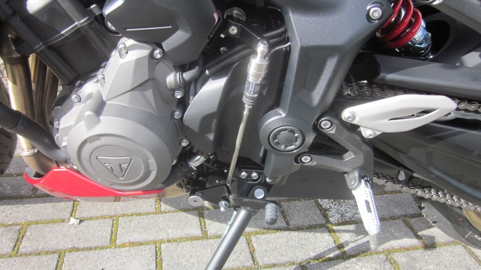 ABS Katalysator Elektrostarter Fahrzeugbeschreibung TRIUMPH TRIDENT 800 Model 2026 SOFORT LIEFERBAR Carnival Red Die Neue TriumphTrident 800 -MY2026- Lieferbar MITREISSENDE POWER Adrenalin auf Abruf - jederzeit und überall. INTUITIVE AGILITÄT Energiegeladenes Fahrergefühl, das einfach Spaß macht. URBANE SPORTLICHKEIT Kraftvolle, sportliche Präsenz - neu definiert. FOKUSSIERTE TECHNIK Intuitive Funktionen, die dich im Flow und ganz im Moment halten. **Spezifikation **Motor und Getriebe Nennleistung: 115 PS / 113 bhp (84,6 kW) bei 10.750 U/min Max. Drehmoment: 84 Nm bei 8.500 U/min Hubraum: 798 cm Bohrung: 78 mm Hub: 55,7 mm mm Auspuff: Edelstahl-3-in-1-Krümmeranlage mit seitlich montiertem Edelstahl-Schalldämpfer Endantrieb: X-ring-kette Kupplung: Drehmomentunterstützte Anti-Hopping-Kupplung, nass Getriebe: 6-Gang-Getriebe **Fahrwerk**Rahmen: Rohrrahmen aus Stahl Hinterradschwinge: Beidseitig, aus Stahl gefertigt Vorderrad: Aluminiumguss, 5-Speichen, 17 x 3,5 Zoll Hinterrad: Aluminiumguss, 5-Speichen, 17 x 5,5 Zoll Vorderreifen: 120/70 R 17 Hinterreifen: 180/55 R 17 Vorderradaufhängung: Showa 41 mm Upside-Down-BP-SFF-Gabel mit einstellbarer Druck- und Zugstufendämpfung, 120 mm Federweg am Vorderrad Hinterradaufhängung: Showa-Monostoßdämpfer RSU mit einstellbarer Federvorspannung und Zugstufendämpfung, 130 mm Federweg Vorderradbremse: Doppelte 310-mm-Schwimmscheiben, radial montierte 4-Kolben-Bremssättel, OCABS Hinterradbremse: inzelne 220-mm-Festscheibe, schwimmend gelagerter Einkolben-Bremssattel, OCABS Instrumente: LCD-Multifunktionsinstrument mit integriertem TFT-Farbbildschirm **Abmessungen Breite, Lenker: 815 mm Höhe: 1088 mm Sitzhöhe: 810 mm Radstand: 1402 mm Lenkkopfwinkel: 24,5 °Nachlauf108 mm Fahrfertiges Gewicht: 198 kg Tankvolumen: 14 l **Abgasnorm EURO 5+ **Service 16.000 km oder 12 Monate (je nachdem, was zuerst eintritt) Basispreis 9.695,- € Carnival Red 150,-€ Liefernebenkosten 590,-€ JETZT MIT 4 JAHREN WERKSGARANTIE OHNE KILOMETERBEGRENZUNG Die neue Factory Extended Warranty im Rahmen des Total Care Progamms: 4 Jahre Triumph Herstellergarantie ohne wenn und aber! Wir finanzieren Motorräder Lassen Sie sich ein individuelles Angebot erstellen. Gerne nehmen wir ihr jetziges Motorrad in Zahlung. Deutschlandweiter Versand zu günstigsten Konditionen (ab 199 EUR). Inzahlungnahme möglich, Irrtümer und Zwischenverkauf vorbehalten Unsere Öffnungszeiten: Mo.- Fr. 09:00 bis 18.00 Uhr Sa. 09:00 bis 13.00 Uhr Weitere Fahrzeuge unter www.triumph-luebeck.de www.vikingcycles.de Sprechen Sie uns auf unsere Finanzierungen an, auch für Gebrauchtfahrzeuge. Telefonisch beraten wir Sie gern unter 0451-400 700 VIKING CYCLES GMBH LÜBECK seit 2002 TRIUMPH MOTORCYCLES VERTRAGSHÄNDLER Fahrzeugdetails